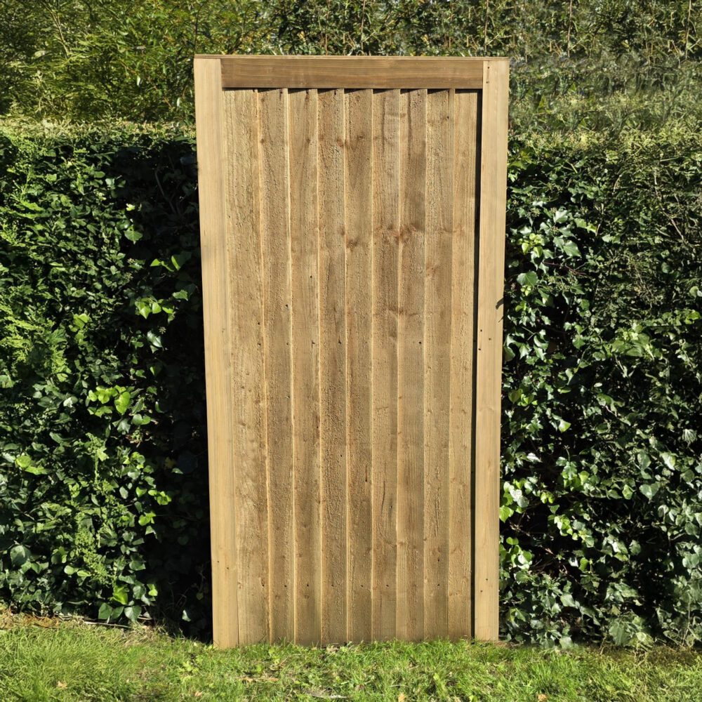 Heavy duty, pressure treated, rustic panel with a flat cap. Using 38mm x 16mm battens with a 47mm x 22mm top and bottom rail.